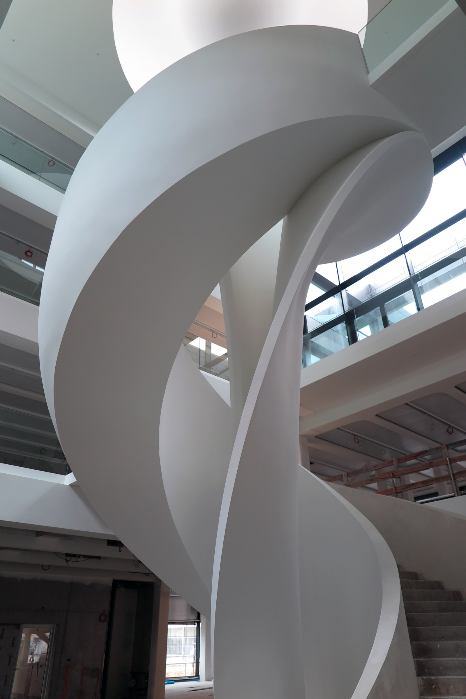 Bau eines architektonisch einzigartigen geschwungenen Treppenaufgangs im Foyer einer neuen Unternehmenszentrale