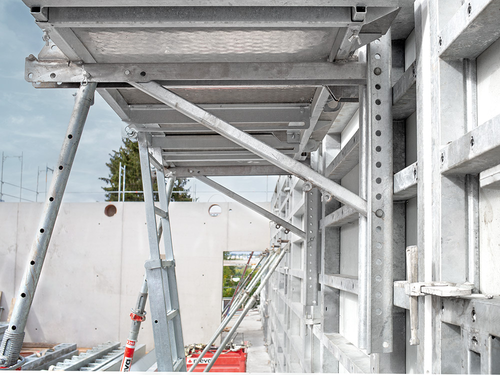 Die einmalige Montage der Plattformen (250 oder 125 cm breit) reduziert die Arbeitszeit bei jeder Verwendung. Baustellenlogistik und Lagerhaltung werden vereinfacht, denn zusammengeklappt sind Element und MIS nicht einmal 30 cm hoch. Zahlreiche durchdachte Details tragen zur Unfallvermeidung bei und erhöhen die Effizienz auf der Baustelle.