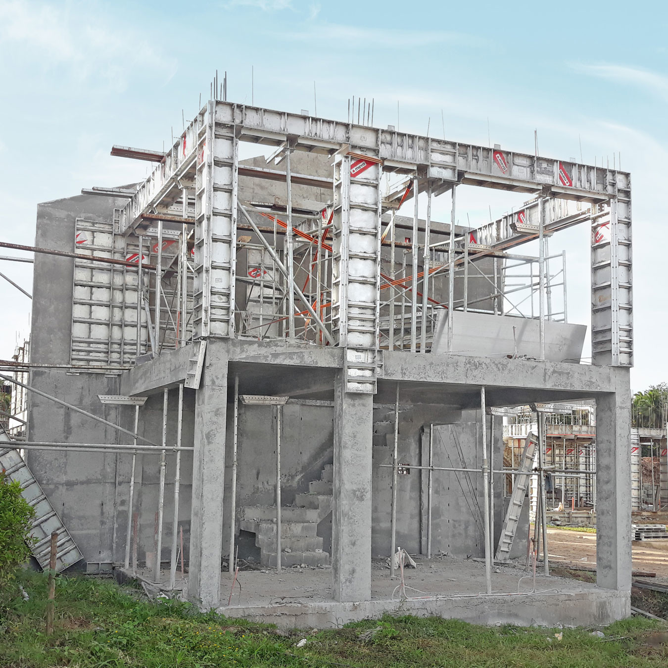 | All-in-one solution | The MEVA MonoFix system can be used to form all concrete structures: Walls, Floors, Slabs, Balconies, Window hoods and parapets, Curved and decorative features, Columns, Beams, Stairs. |