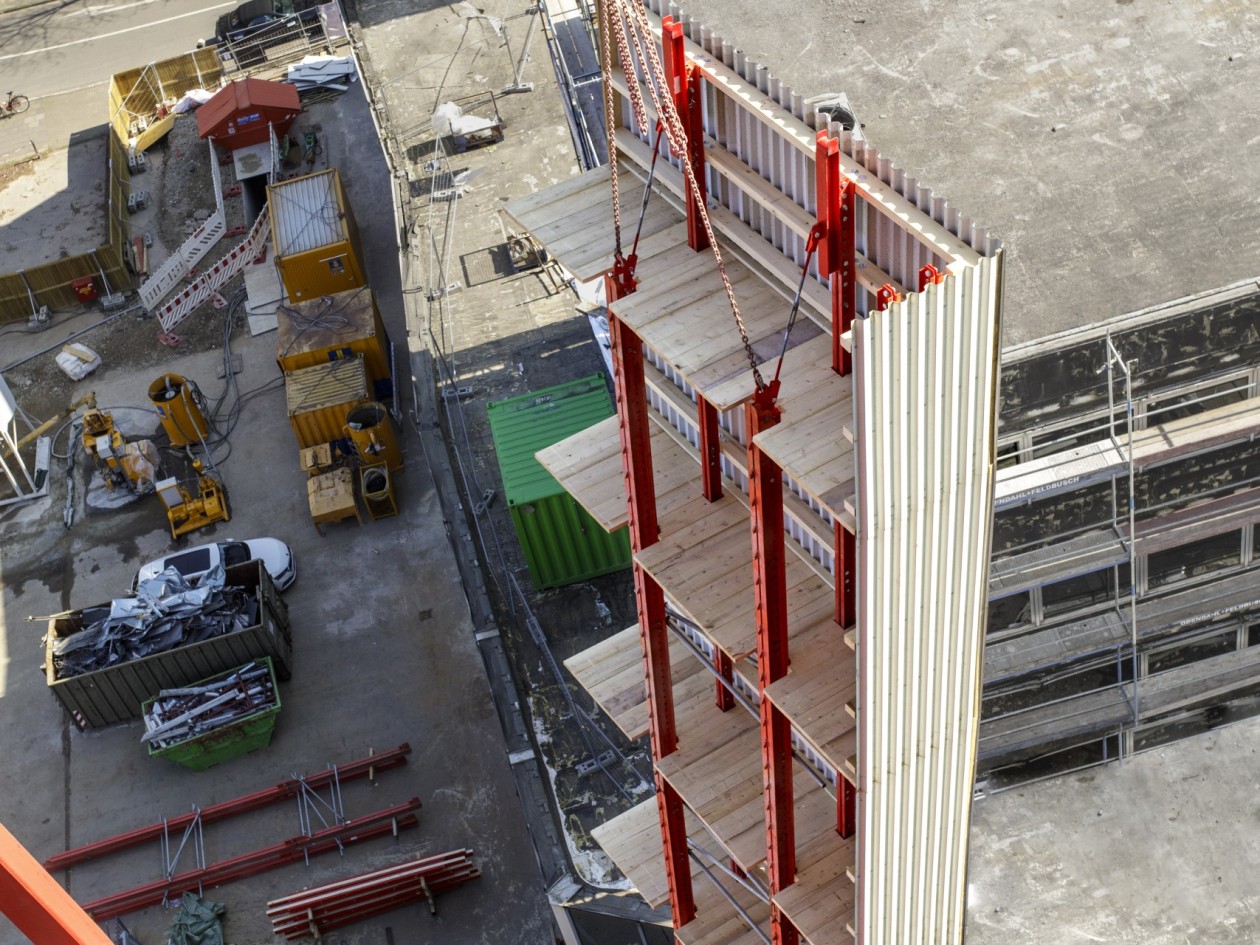 Despite the unfamiliar procedure, the experienced Linkamp team already started to pick up speed after deconstruction of the top storey. Since then, work has proceeded more quickly and smoothly with each storey. Linkamp Project Manager Thorsten Blasse now knows that selecting the MEVA system was the right decision: