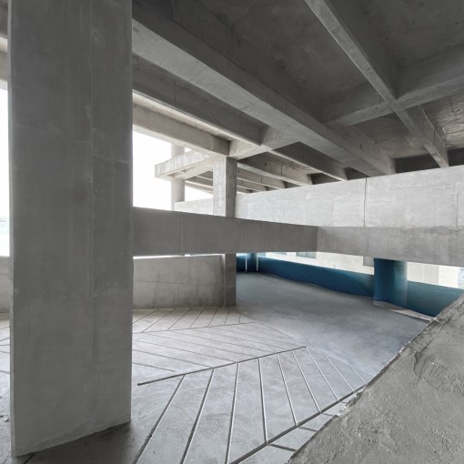 A similar procedure is adopted at the stairwell locations: due to the slab openings near the wall, the climbing cones for two of the 18 MGS-H units could only be secured via the external wall. Here too, a 100 mm hole was drilled, an M30 climbing cone and DW 20 tie rod cast in, and secured by a cross-stiffener with articulated flange nut.