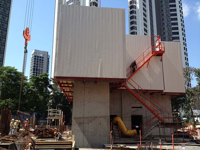 The project was a success, with the concrete core having a superior surface finish compared to what could have been achieved with other climbing formwork systems.