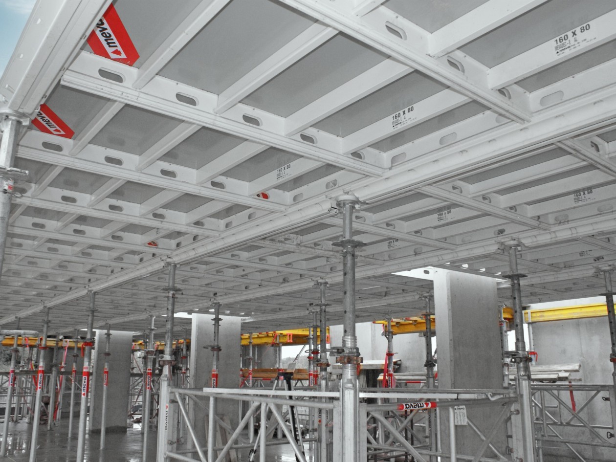 From start to finish the MEVA designers have made their objectives clear: ensuring safe working and creating easy-to-understand drawings out of complex design situations. This has complemented our working style well and guaranteed the best results on site. At every level of our site staffing structure the team have been pleased with the erecting and dismantling of the formwork, making light of complicated manoeuvres and adjustments as and when required. In particular, the AluStar panels have proven to be a real asset, lightweight and easy to position. The KAB system has given us a simple method for installing access around the external walls without the need to wait for scaffolding.