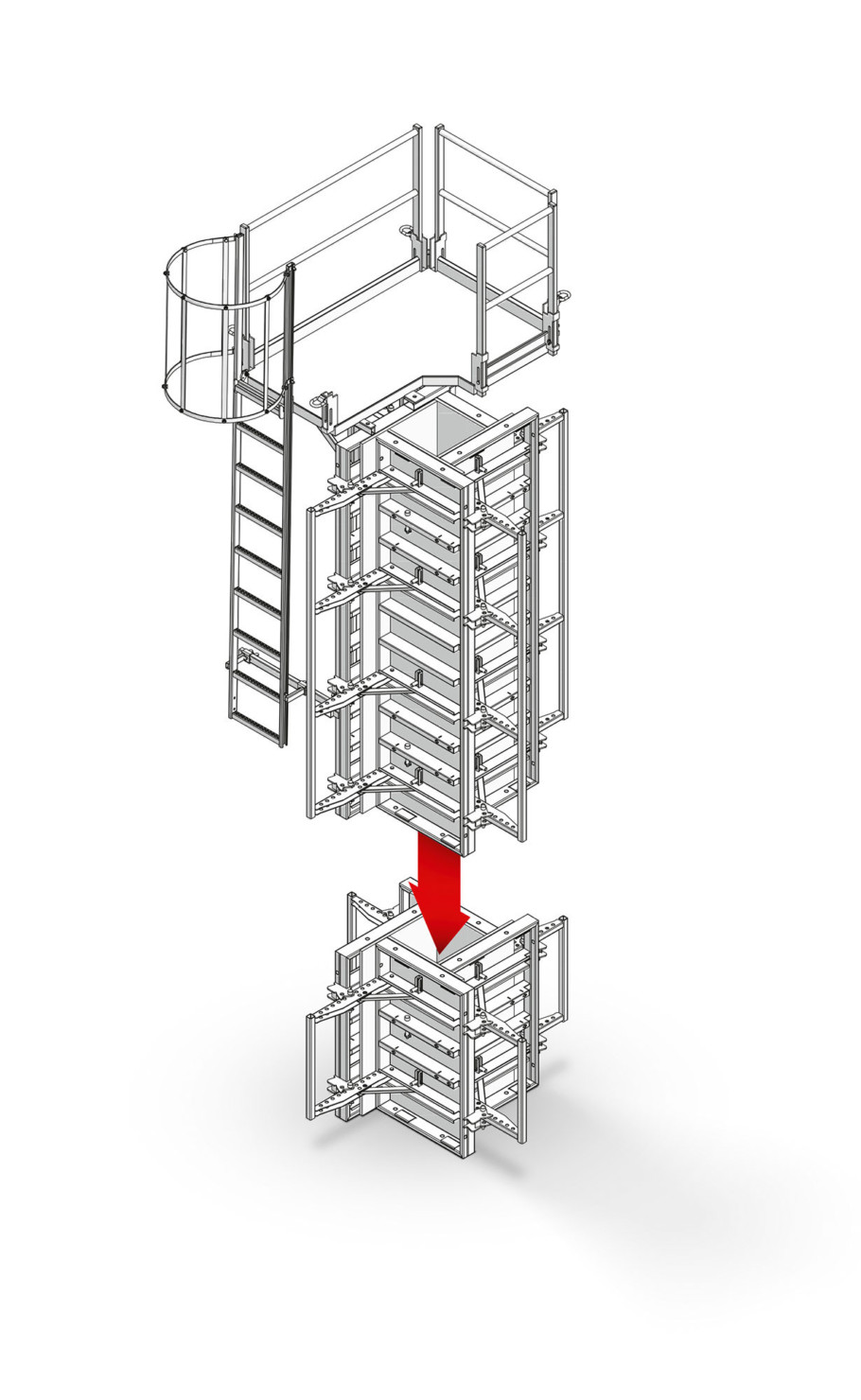 - For varying pour heights, the column formwork can be easily shortened or extended at the bottom