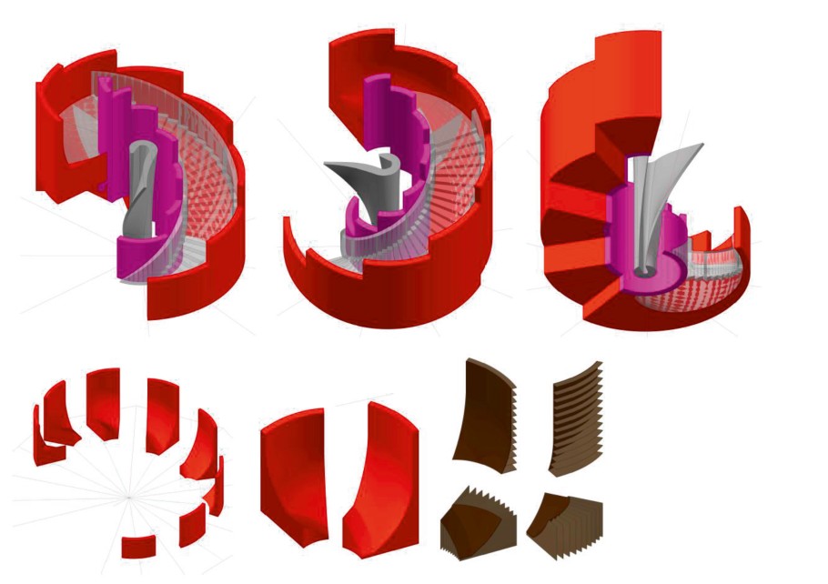 First, the engineers in Haiterbach split the 3-D model of the staircase into eight separate units, then worked out an exact pour plan for each.