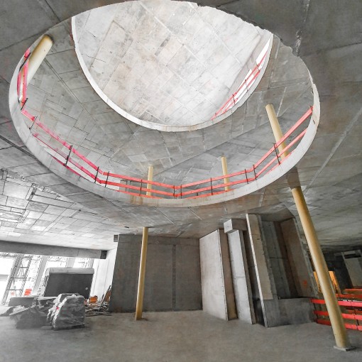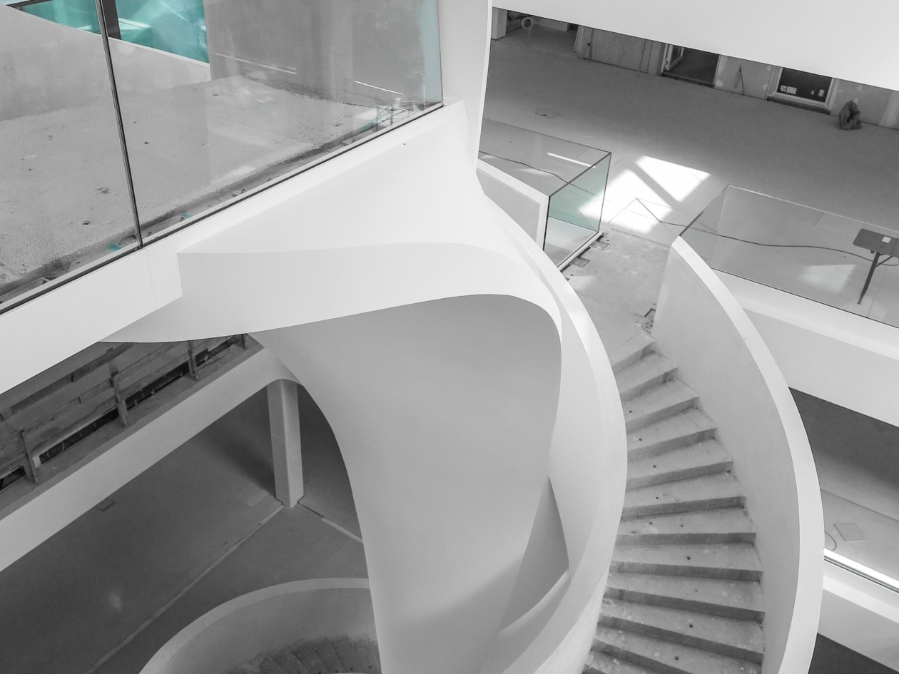 Construction of an architecturally unique curved staircase in the entrance hall of a new corporate headquarters.