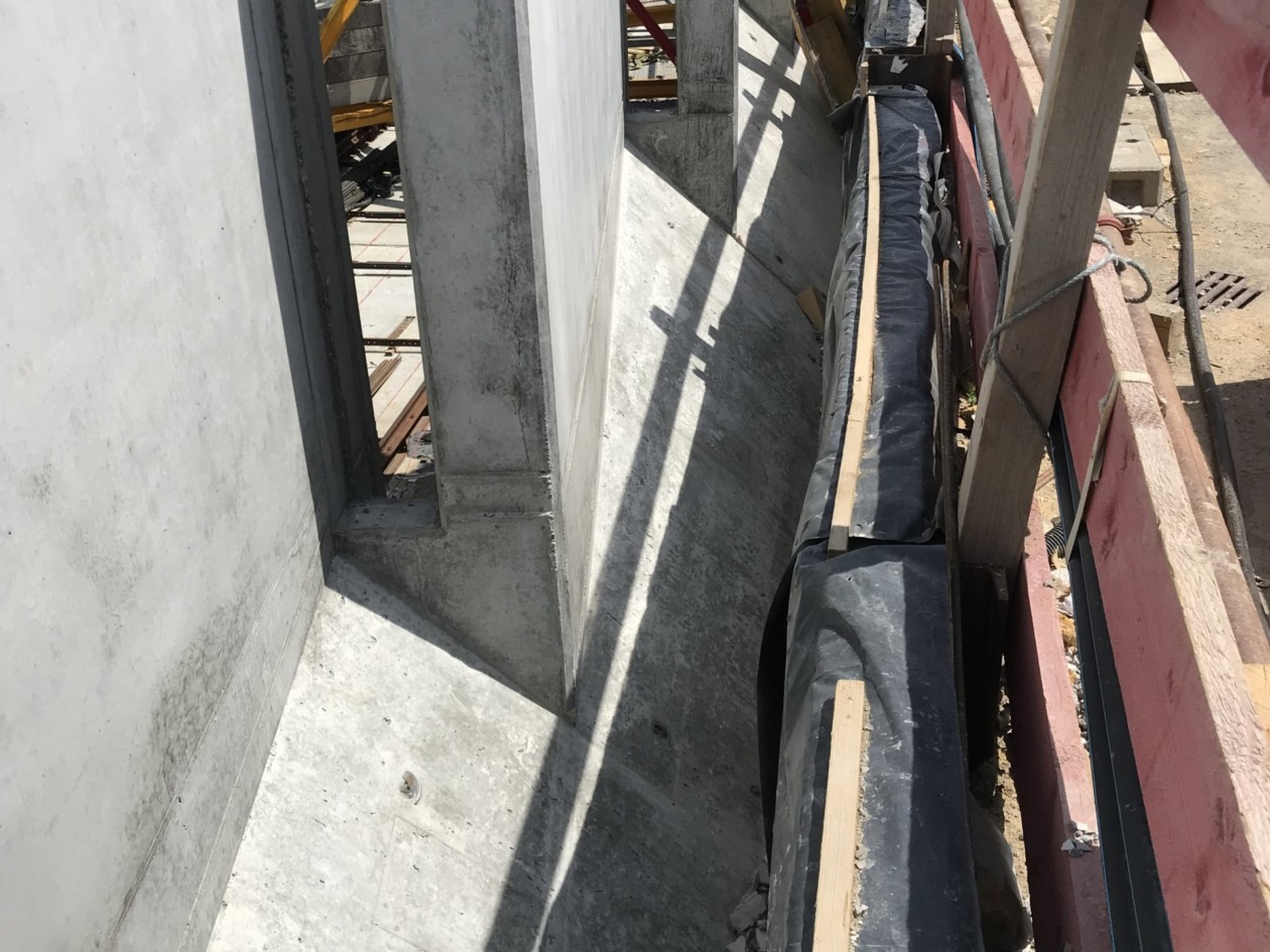 To facilitate removal of the niche formwork after casting, it is additionally fitted with hinged corners and designed with a trapezoidal shape with a narrower rear face. As a result, once the front part is free, the unit can be easily removed without friction. The hinged corners also allow the sides to be folded in, which further simplifies the stripping process.