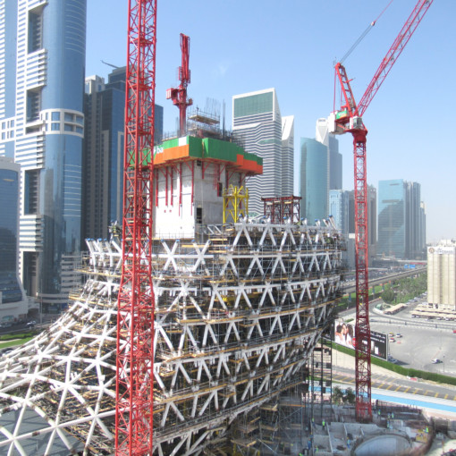 The shape of the building meant that the building’s core shafts had complicated geometry that needed careful planning. In addition, the height of the building presented safety concerns.