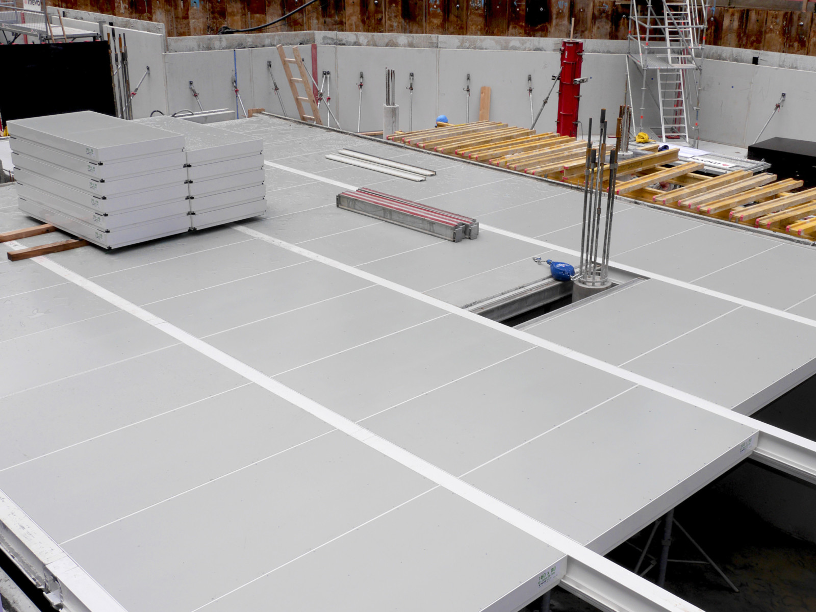 The requirements for slab formwork vary, depending on your project’s floor plan, room dimensions, ceiling height, slab thickness and underside of slab. MevaDec is the solution: a slab formwork system made up of aluminum sections and an integrated plastic forming facing.