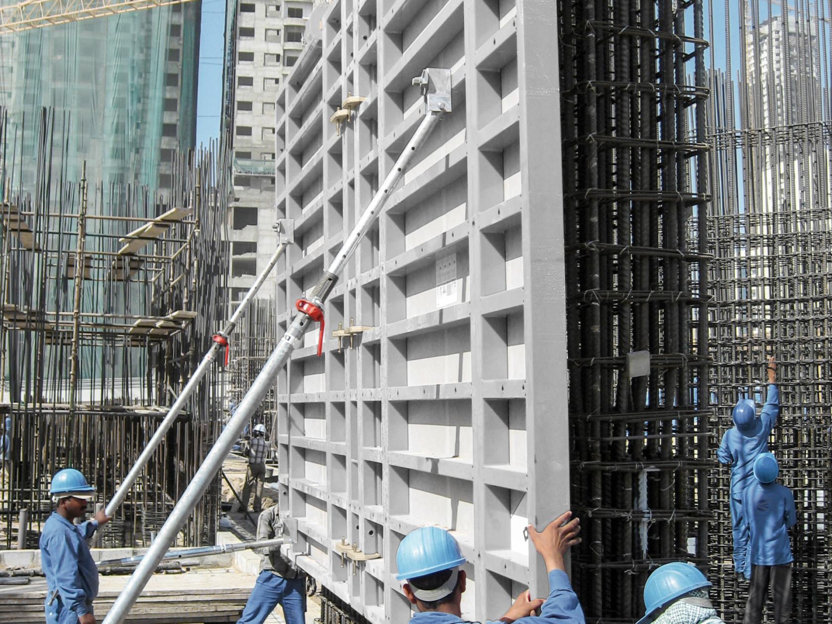 Le coffrage Mammut 350 permet de nouvelles dimensions. Robuste et performant, ce coffrage se démarque par sa très grande résistance à la pression du béton frais (jusqu’à 100 kN/m² pour un voile simple). Facile à monter, il permet des temps de coulage particulièrement courts jusqu’à 4 m de remplissage.