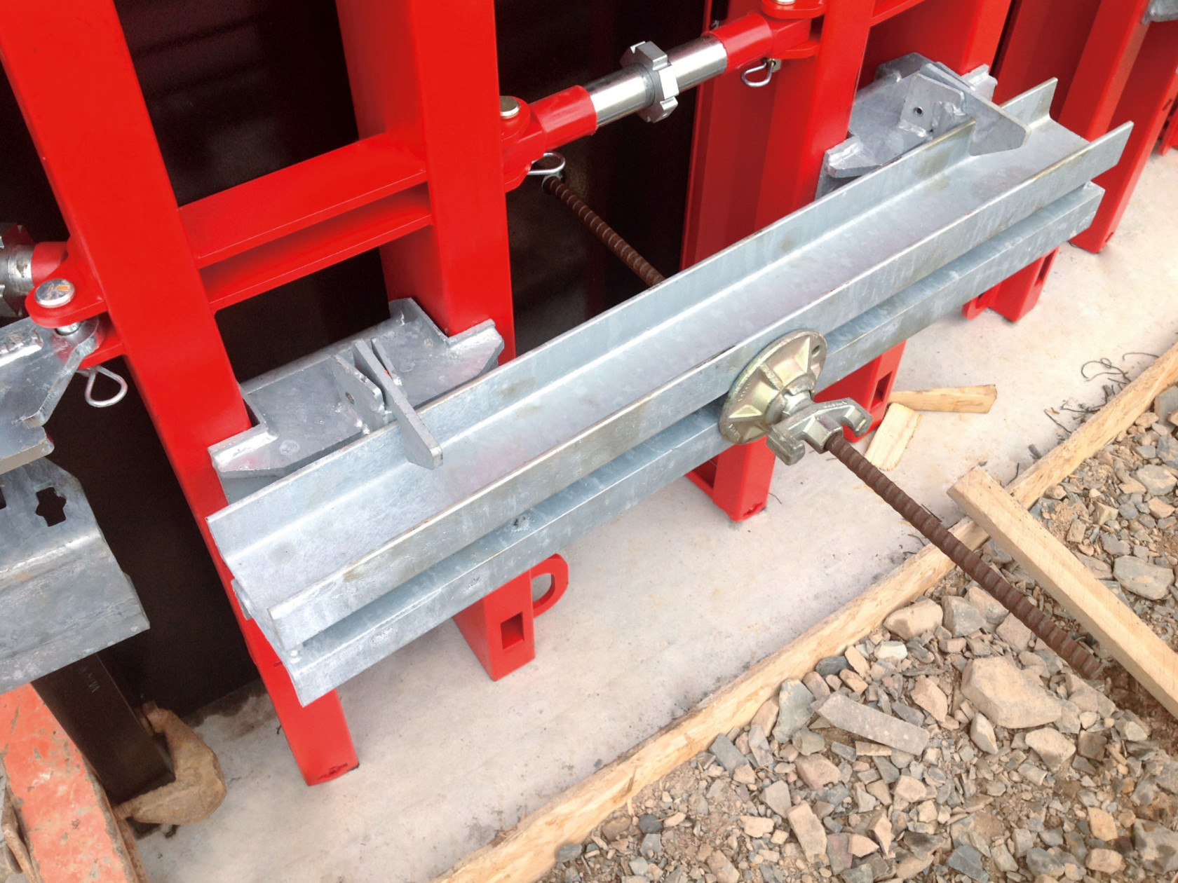 Rails d’ancrage et tiges DW Ø 20 mm avec charge admissible de 160 kN (DIN 18216), serrage par les deux côtés.