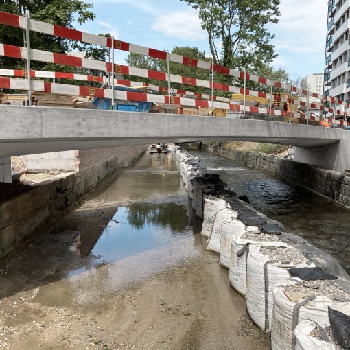 La mise en œuvre de la méthode à poutrelles primaires et panneaux permet de décoffrer, en quelques coups de marteau seulement, les panneaux MevaDec et les poutrelles primaires avant l’heure. Pendant que les étais sont conservés sous la dalle en attendant la prise définitive du béton, panneaux et poutrelles sont déjà à l’œuvre sur le tronçon suivant. De cette manière, il y a aussi nettement moins de matériels à acheminer, à stocker et à assembler sur le chantier. La mise en œuvre des panneaux demande peu d’efforts, car ils sont légers et ergonomiques. Et leur nettoyage est rapide et économe en ressources, car l’adhérence du béton sur le coffrage est faible.