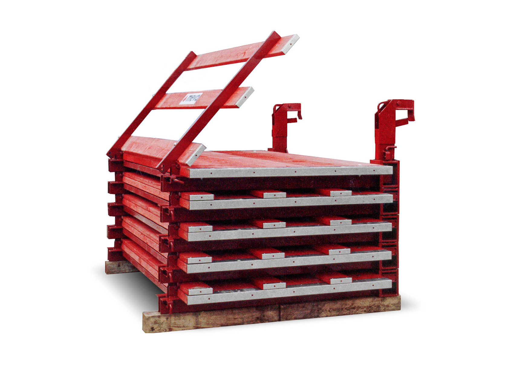 La passerelle de bétonnage amovible BKB de MEVA est une plate-forme de travail sûre, qui s’accroche rapidement sur le coffrage de voiles – déplier, accrocher, travailler. Pour les coffrages de voiles AluStar, StarTec, Mammut 350 et Mammut XT, il existe des supports d’accrochage autobloquants.
