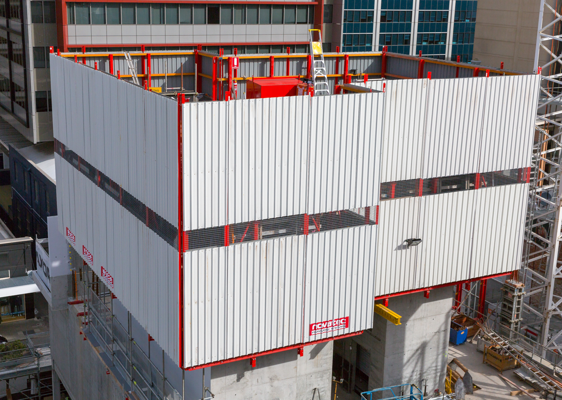 Pour parvenir à surmonter les difficultés de ce projet, il a d’abord fallu trouver des solutions logistiques efficientes. Pour la réalisation des travaux de coffrage, JAXON Construction et l’entreprise de construction SVG Structures ont travaillé de concert avec la société Novatec Formwork Systems, le distributeur australien de MEVA.