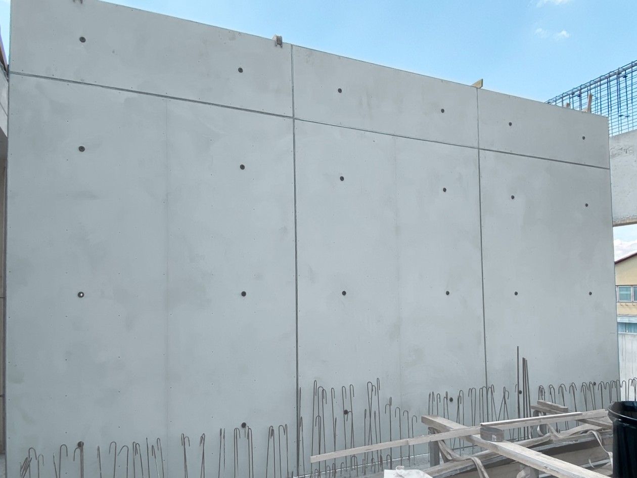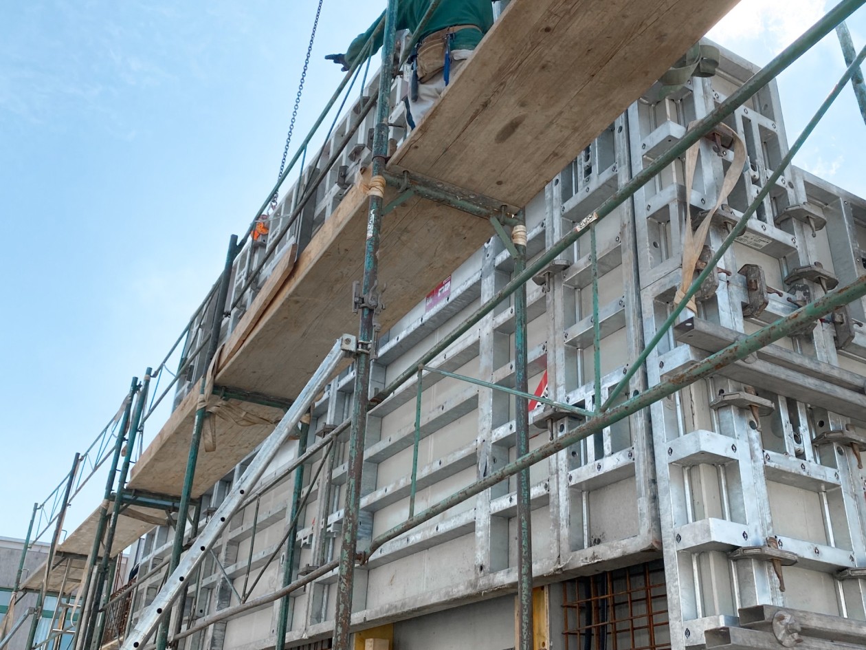 Un nouveau bâtiment de trois étages, constitué d’amphithéâtres, de laboratoires et de bureaux, offrira aux enseignants, tout comme aux étudiants, de nouveaux locaux pour la recherche et l’enseignement dans le domaine de l’énergie et de l’environnement. Pour ce projet, l’entreprise de construction devait être à même de fournir une grande qualité esthétique. L’un des critères à remplir était d’avoir la possibilité d’une hauteur de coffrage de 4,75 m pour les voiles. Situés à 3,45 m de haut, les plafonds suspendus offrent une vue dégagée dans les couloirs de l’école ; aucun joint horizontal ne devait venir déranger l’œil. De plus, les prescriptions architecturales prévoyaient une matérialisation harmonieuse des joints et des trous de banches, ainsi que la réalisation de parements fins.