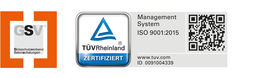Biztosítjuk Önt a legmagasabb szintű MEVA-minőségről, amely megfelel a Betonzsaluzatok Felügyeleti Szövetség (GSV – Güteschützverband Betonschalungen e.V.) előírásainak. A zsaluk ellenőrzése és átvétele a MEVA üzemeiben történik, miután megkapják az ISO 9001:2015 szabvány szerinti tanúsítványt.