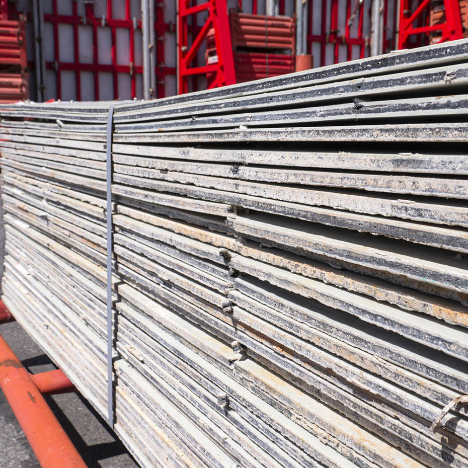Alkus-sheet GM does not absorb water. It does not swell or shrink. The robust, smooth surface guarantees first-class concrete quality even after many uses. Due to their durability, the boards are a good alternative for applications where a wooden board would otherwise be used.