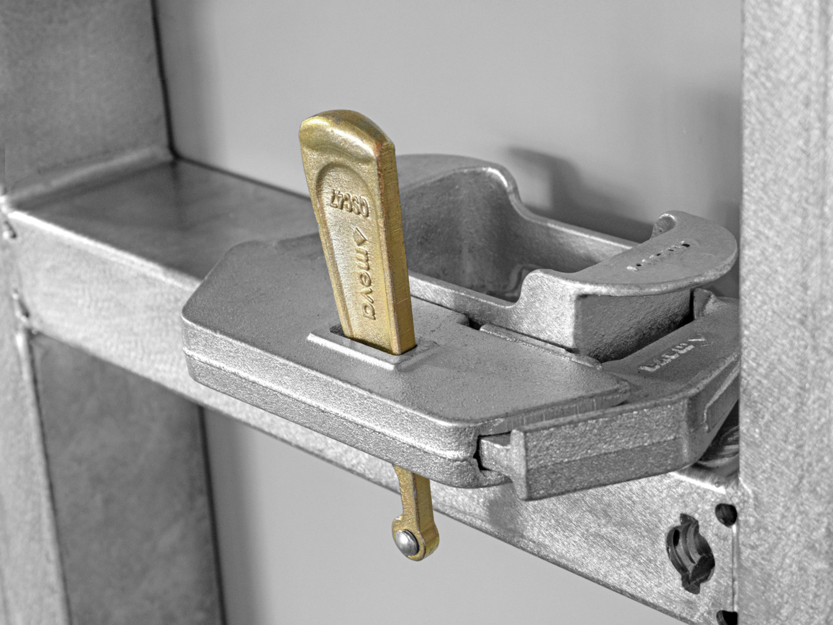 - MEVA-bekistingsslot voor een krachtgesloten verbinding met enkele hamerslagen