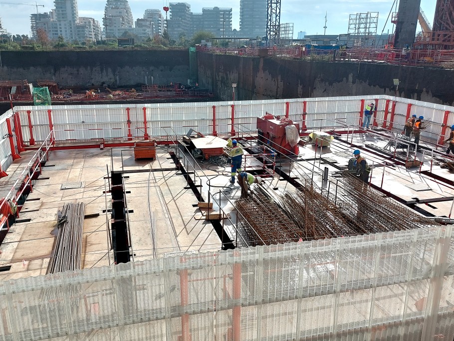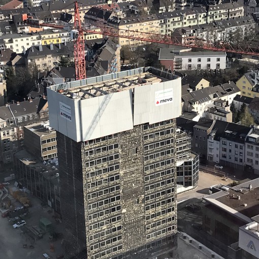 Altijd in het zicht is de hoogbouw, waarvan de kern wordt opgetrokken met het automatische klimsysteem MAC (MEVA Automatic Climbing). Het klimproces is kraanonafhankelijk, hydraulisch en als een complete eenheid, met wandbekisting en inhuizing rondom. Dit comprimeert het bouwproces, verkort de benodigde tijd en is aanzienlijk veiliger dan systemen met apart opklimmende steigers. De volledig ingehuisde en gesloten eenheid beschermt de arbeiders tegen de elementen en zorgt voor comfortabele omstandigheden. Dit heeft niet alleen een positief effect op de efficiëntie van het werk en de voortgang van de bouw, maar biedt tevens de mogelijkheid om onafhankelijk van elkaar aan de muur en de vloer te werken. Het bovenvlak biedt veel plaats aan giekpompen, biedt voldoende opslagruimte en beperkt de kans op ongevallen tot een minimum.