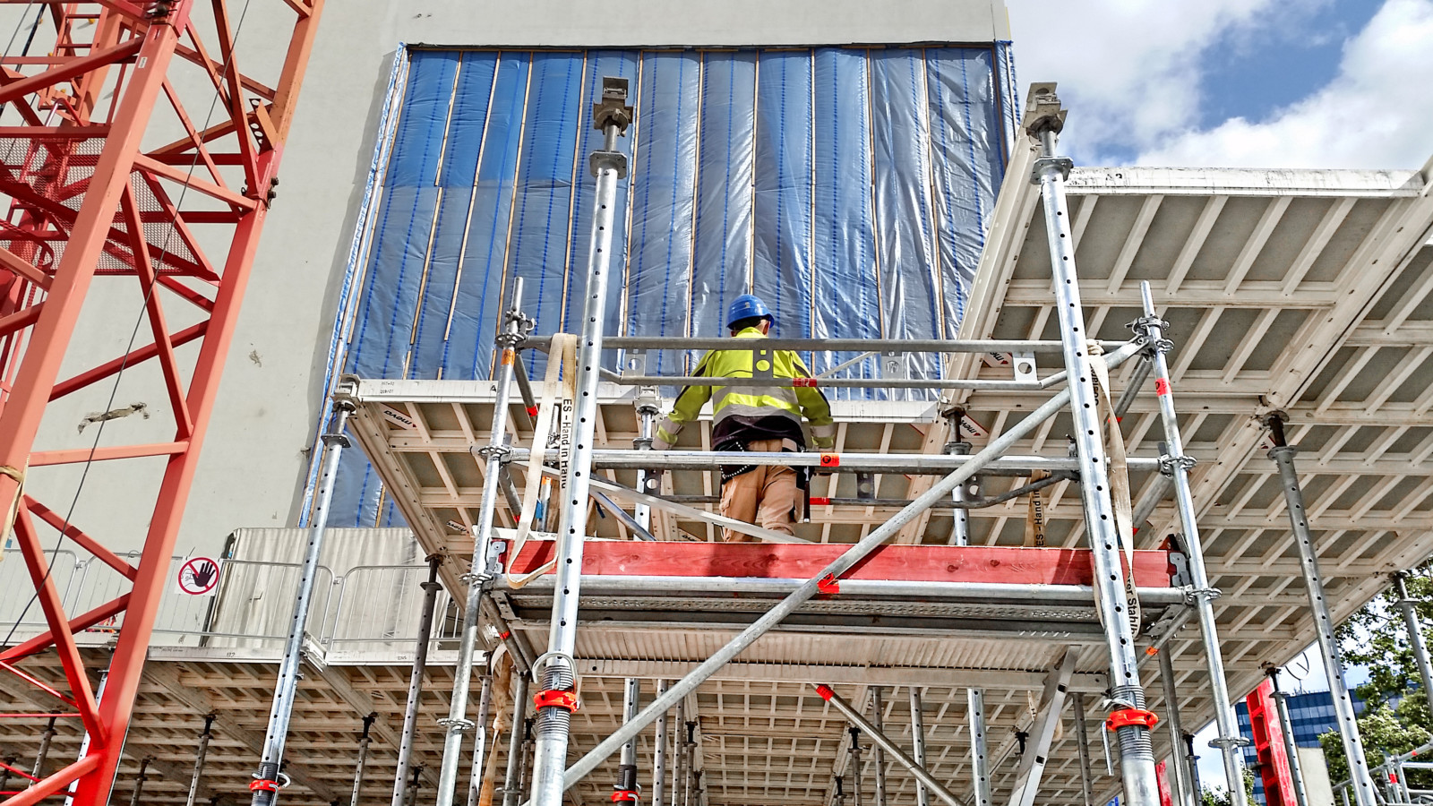 Construction manager Mathias Lippski looks back with satisfaction after the completion of the building shell: “With MevaDec in particular, we had a system at our disposal that could be used throughout for different slab heights and requirements and which was nevertheless light and easy to handle. MevaDec made a significant contribution to reducing the workload on the three rotating tower cranes and thus to the timely completion of the building shell.”