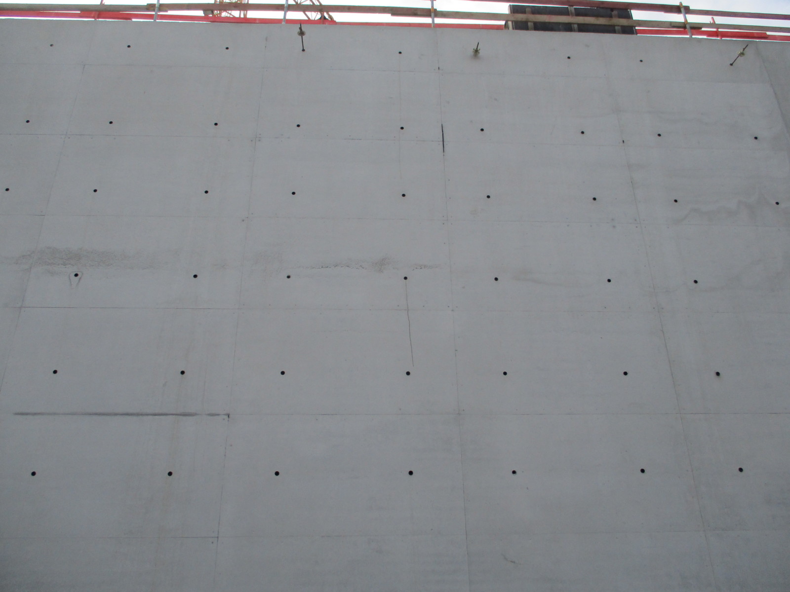 The hall‘s walls had to be poured following specific architectural finish specifications. Facing sheet was mounted on the panels on-site to achieve a special surface pattern on the concrete. Site management used the MEVA concrete pressure calculator to check the fresh-concrete pressure during concrete pouring at heights up to 11,50 m and to precisely determine the rate of pouring.