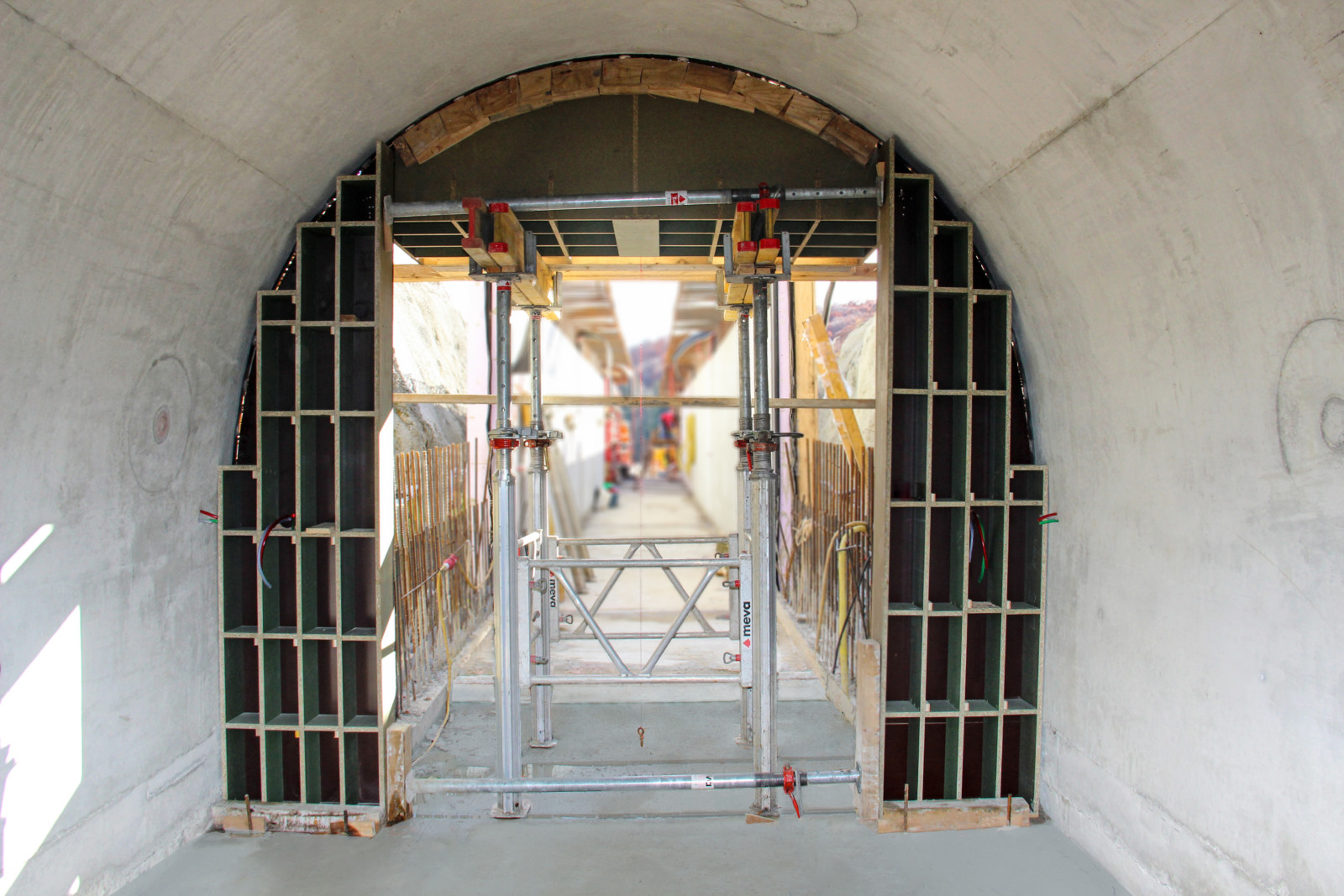 In terms of construction, the only significant difference between the two rescue tunnels is their length. This allowed use of the same formwork for both.